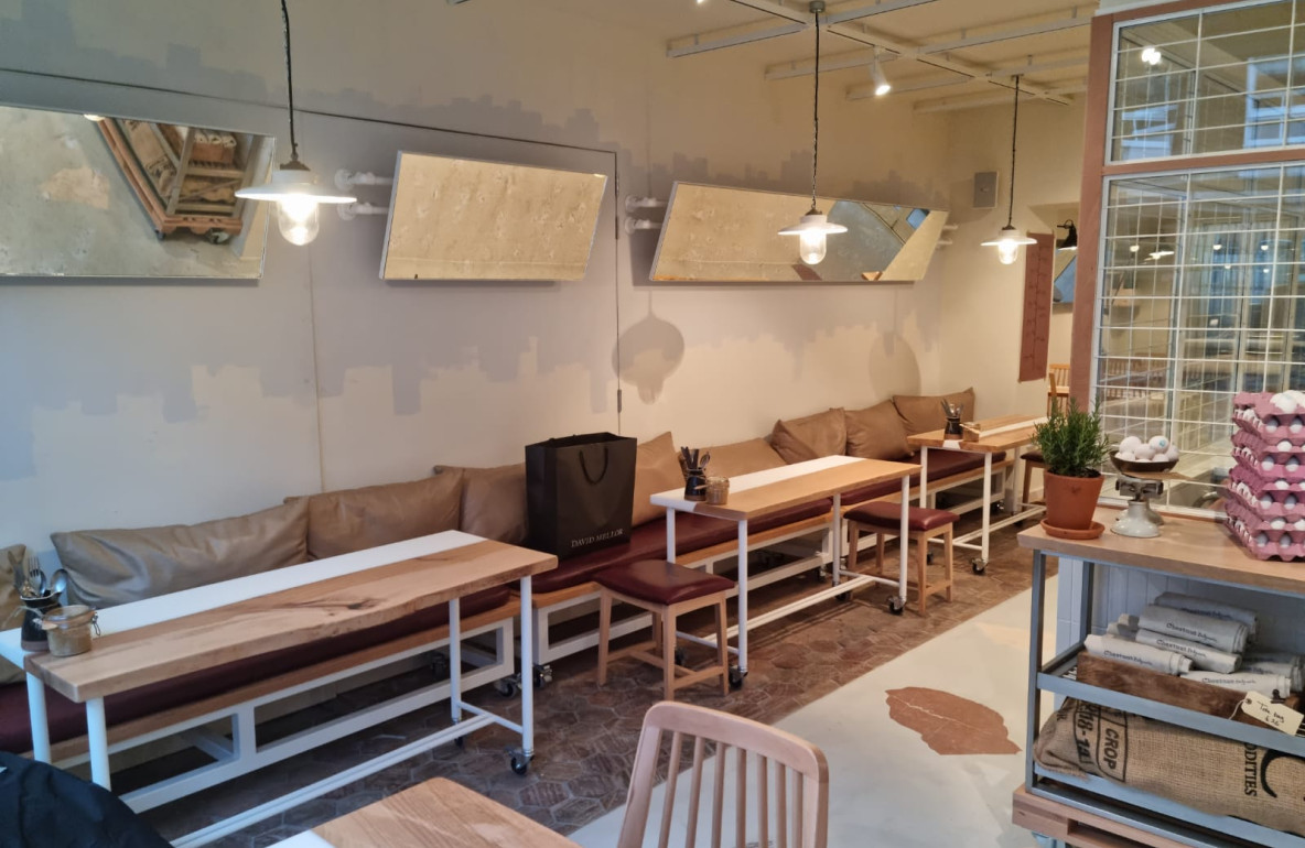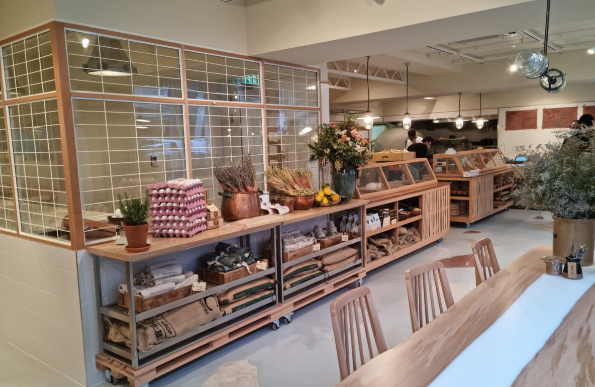 The result is a bright, welcoming bakery interior that embodies both artisan authenticity and modern comfort.