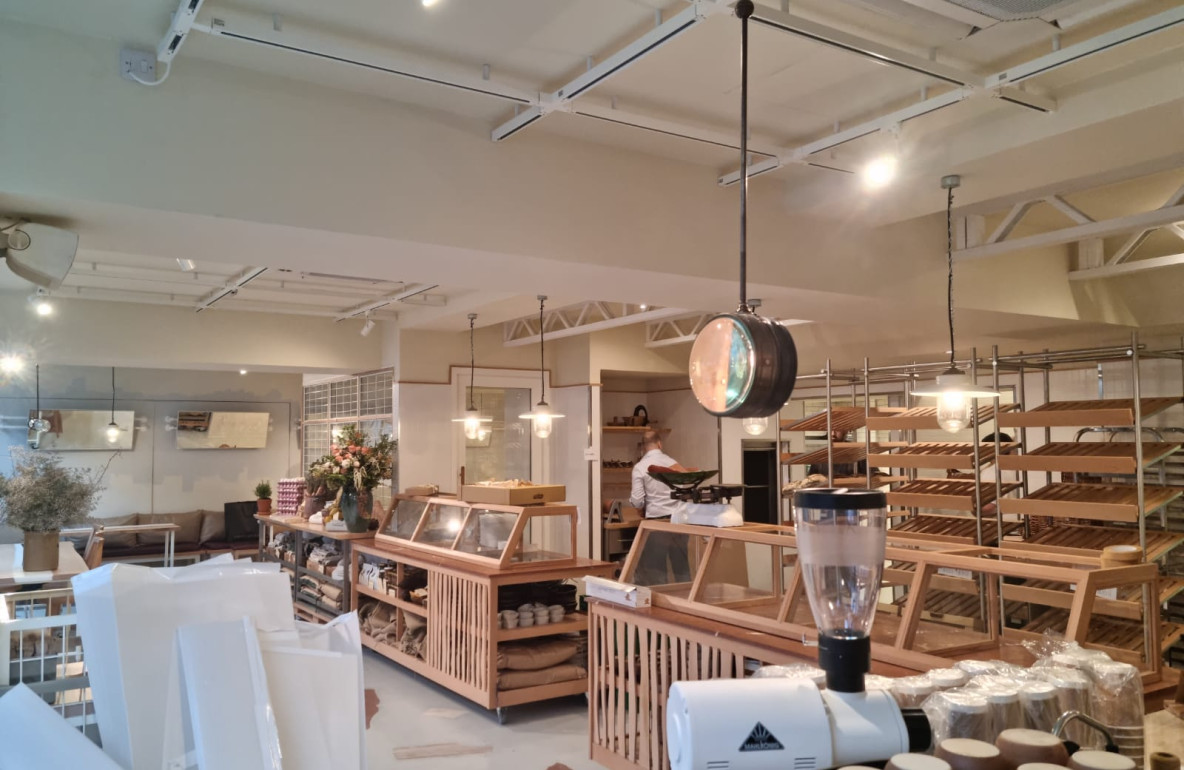 This project transformed a shell unit into a fully operational artisan bakery, combining refined interior design, complex kitchen installations, and luxury finishes to create a flagship retail space for the Chestnut Bakery brand.
