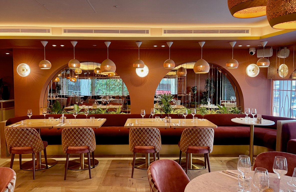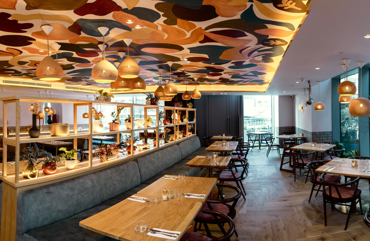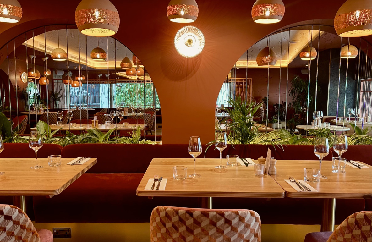 This restaurant was designed to be eye-catching, with really beautiful bespoke features, including a hand-painted ceiling by a scenic artist, a bespoke curved staircase, and cappuccino bamboo tiles complemented by brass trims. Whilst creating a beautiful aesthetic, this all added some complexity, so we collaborated closely with skilled artists and designers to craft and install these standout features and put design at the heart of the project.