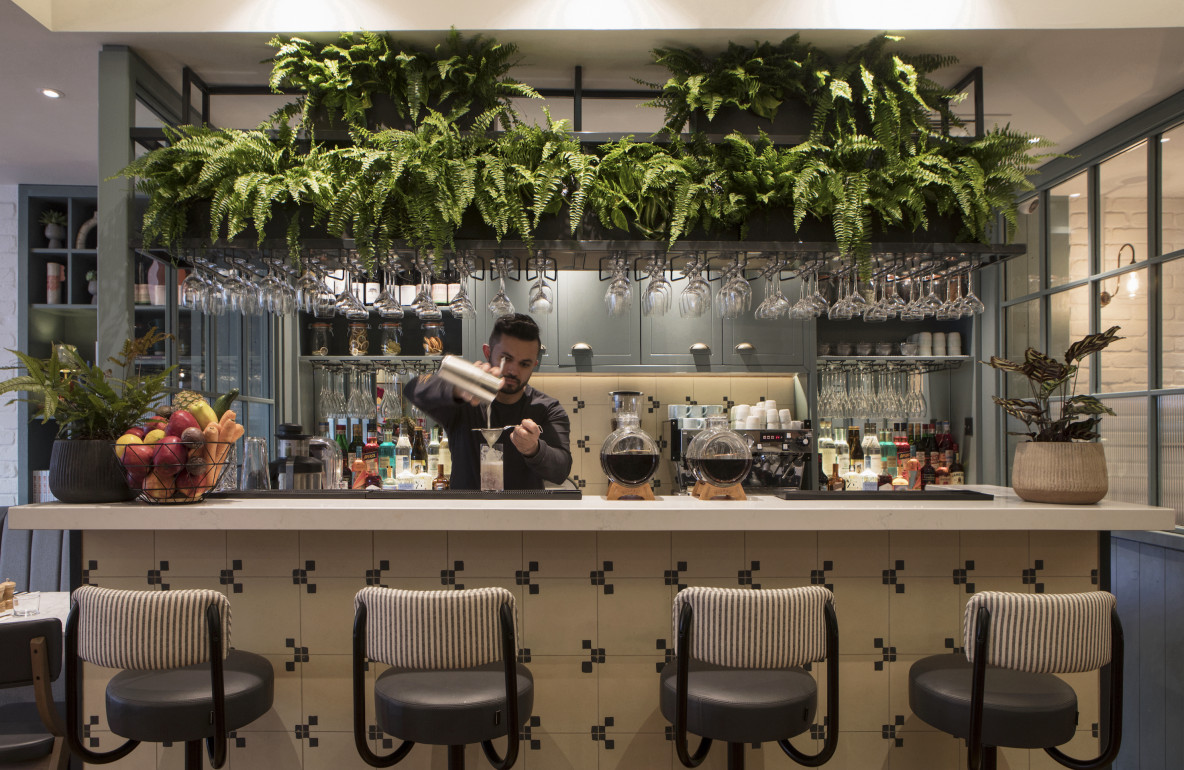 Bespoke joinery, including custom bar counters, booth seating, and feature wall panelling